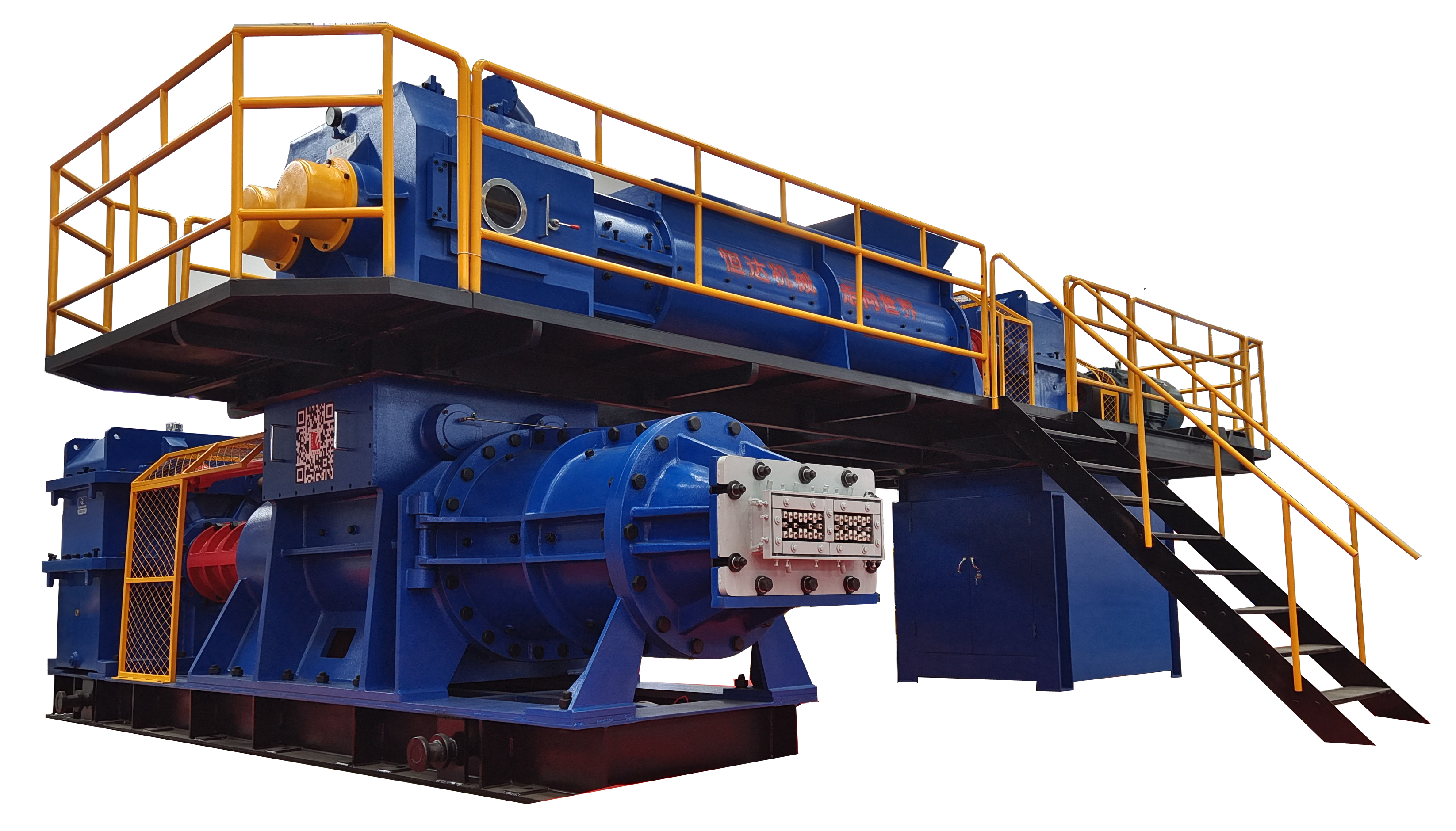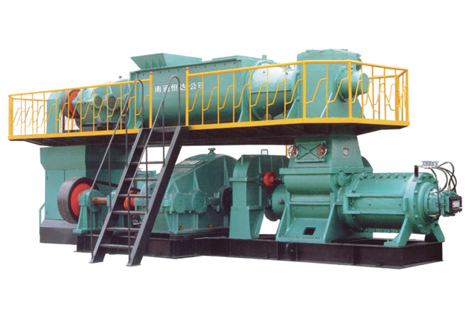 該機(jī)采用上、下級單獨(dú)傳動,上級采用單軸攪拌,箱體采用鋼板焊接,擠出壓力大,適用于高孔洞率,薄壁多孔的頁巖,煤矸石、粘土磚的硬塑成型。